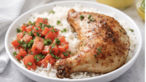Serve chicken over rice and top with the fresh tomato mixture.